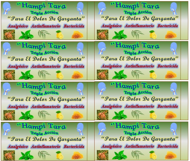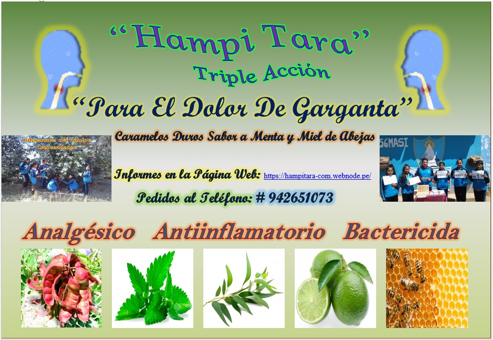 Los Caramelos "HAMPI TARA", están dirigidos a todos los integrantes de la familia, que quieran disfrutar de un agradable sabor a miel, menta y limón, ademas de cuidar y mejorar tu salud de manera natural, pues combate las Enfermedades Respiratorias y alivia al instante, el dolor de garganta, síntomas de la gripe y resfriado, siendo tu mejor aliado para la salud.