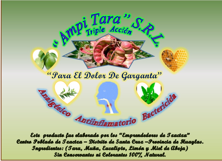 La Tara Posee propiedades antiinflamatorias, antisépticas, antimicóticos, antibacterianas y analgésicas, actúa frente a enfermedades de las vías respiratorias, boca y tracto digestivo. La Muña actúa contra infecciones respiratorias y es un expectorante natural, elimina la gastritis y otros problemas relacionados al sistema digestivo. El Eucalipto, está indicado para la gripe el asma y los catarros. El Limón, actúa fortaleciendo nuestro sistema inmune y combate las infecciones respiratorias. La Miel de Abejas, es antibateriana, contiene antioxidantes, alivia la tos y el dolor de garganta.
